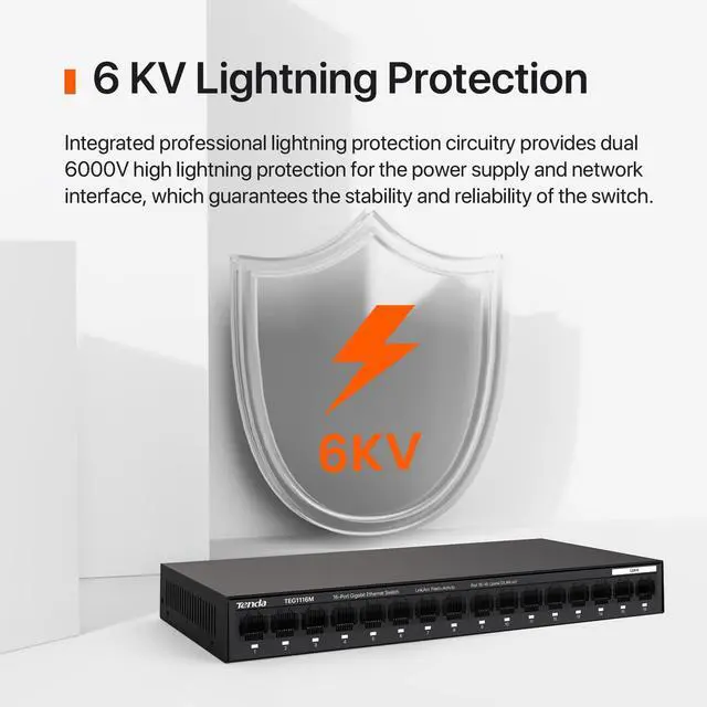 Tenda TEG1116M 16 Port Gigabit Switch, Unmanaged Ethernet Switch with Traffic Optimization, Plug & Play, Fanless & Metal Design Network Switch, Limited Lifetime Protection