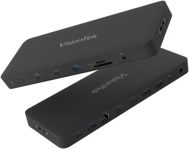 ^^ Your Life Connected: Transform your setup into a workstation with 2x HDMI, 2x DisplayPort, 2x USB-A, 3 x USB-C, 2.5G b Ethernet, SD Card Reader and 3.5 mm audio - connect all your devices through one powerful, all-in-one docking station. ^^ Smart Tek. Real Support. Package includes VT8100 Quad Display Docking Station, USB-C Cable, USB-C to USB-A Adapter, and Power Supply. Designed with purpose, functionality, durability and compatibility in mind. Backed by a 3 Year Warranty and an expert Tek Support team whos always ready to help.