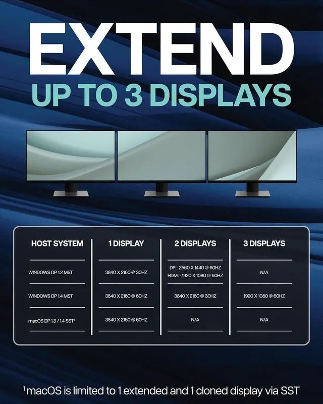 TRIPLE DISPLAY SUPPORT: Compatible with HDMI or DP, allowing up to three external displays via