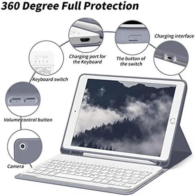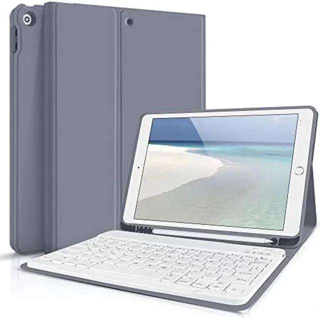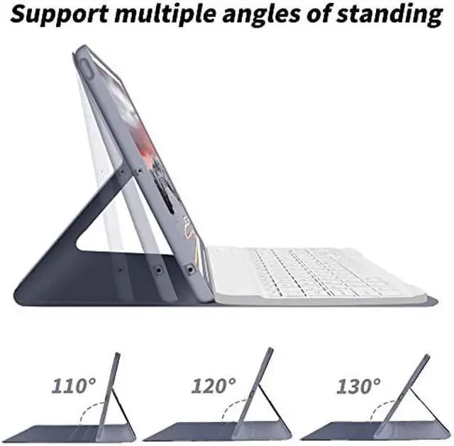 [(Multiple Viewing and Pencil Holder)] Keyboard Case 10.2-the keyboard is magnetically attached and very versatile and the thoughtful design easily adjusts to whatever comfortable angle suits you best. That makes the IPad work like a laptop, so it's perfect for working, typing and editing or watching videos. It has a pen slot inside to prevent the apple pencil from being lost, grab your Apple Pencil, Pencil Cap and Adapter effortlessly whenever you want, easily to carry your with your device.