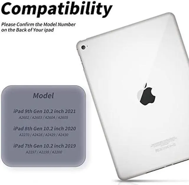 [(Compatibility iPad 10.2 inch Case with Keyboard)] iPad keyboard case is designed for iPad 9th Gen 2021 10.2 inch(Model:A2602/ A2603/ A2604/ A2605), iPad 8th Gen 10.2 inch 2020(Model: A2270/ A2428/ A2429), iPad 7th Gen 10.2 inch 2019(Model: A2197/A2198/A2200). It is Not compatible with any other devices. Please check back bottom of your iPad to find the model number.