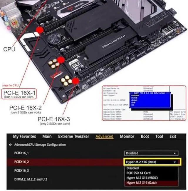Only supports motherboards with detachable PCI-E channels.Control the operation of two disks based on the motherboard PCIE channel,The motherboard without PCIE signal split can only recognize one disk.