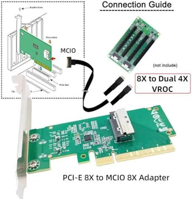 One detachable PCIE PCI-Express 8x motherboard can be connected,The converter can be installed into the system internally through the MCIO interface.