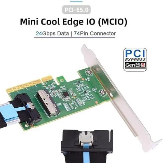 Xiwai PCIE 5.0 Extender Adapter PCI-Express 8X to MCIO 8i Mini Cool Edge IO SFF-TA-1016 Interface Expansion Controller Card for Mainboard SSD Graphics Card