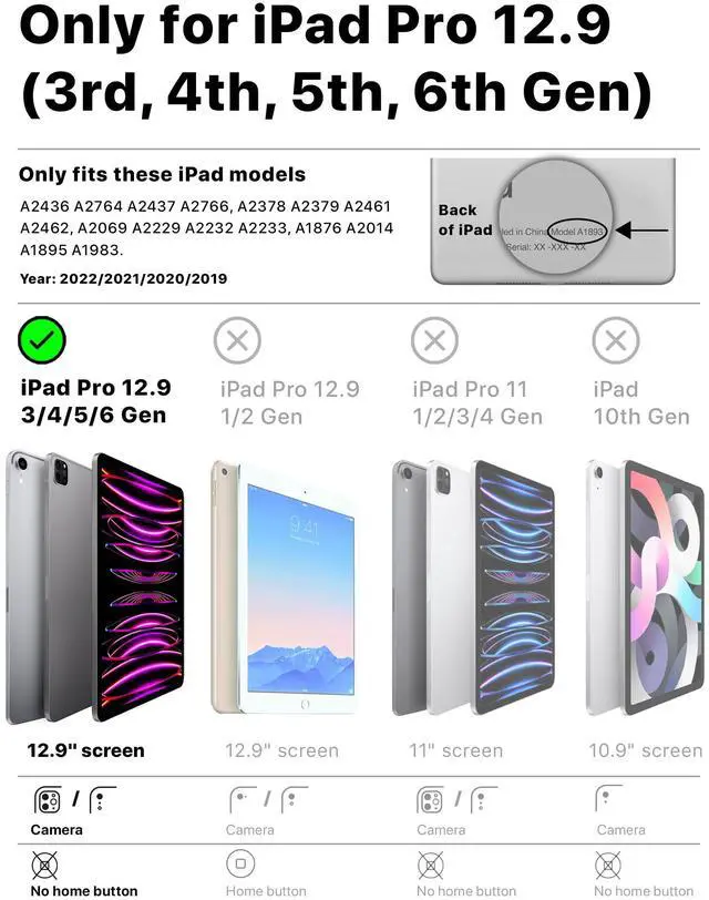 Heavy-Duty iPad Pro 12.9 Case: Designed for iPad Pro 12.9" 3rd, 4th, 5th and 6th Generation (2018/2019/2021/2022) models; package includes screen guard, pencil holder charger, shoulder strap, and handle for convenience