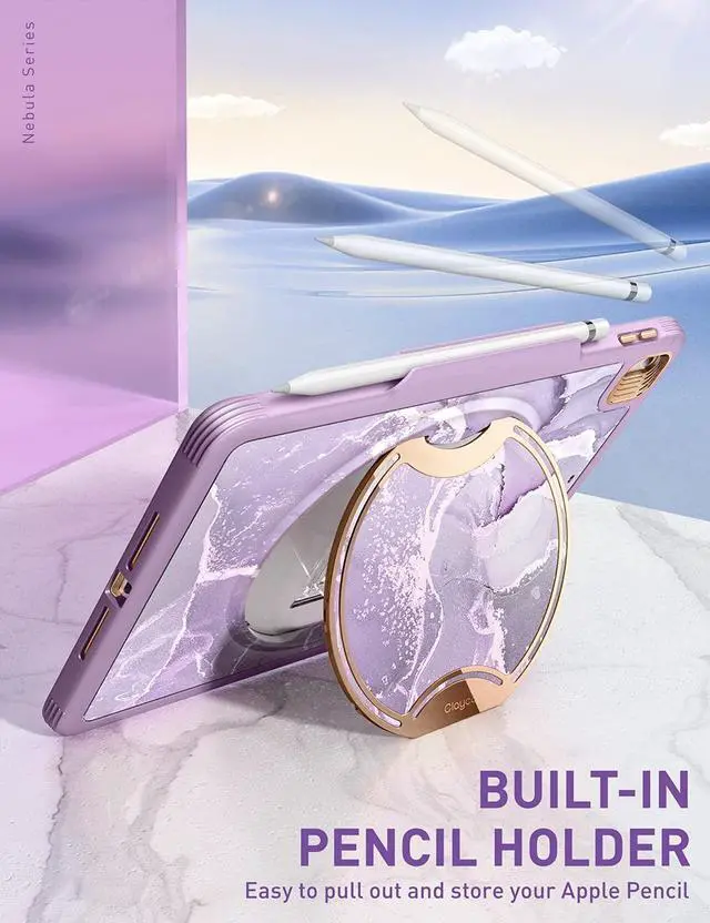 [(Built in Kickstand & Pencil Holder)] Convenient kickstand that slides out for typing, gaming and video watching at home or on the go. Pencil Holder provides a new assisting function, makes it easy to pull out and store your pencil (Apple Pencil is NOT included)