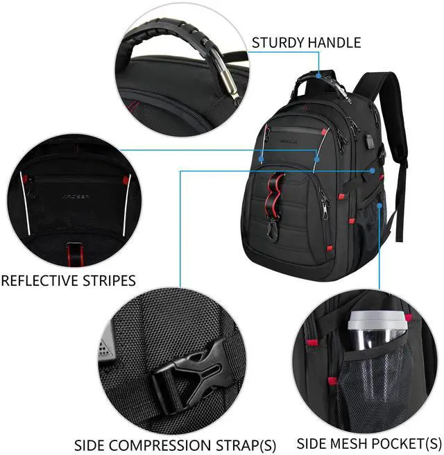 MATERIAL: This stylish laptop backpack is made of durable and high-quality water-repellent fabric; Dimensions: 18.6"x13.5"x10.8", fits up to 17.3" laptop; Weight: 2.88LBS.