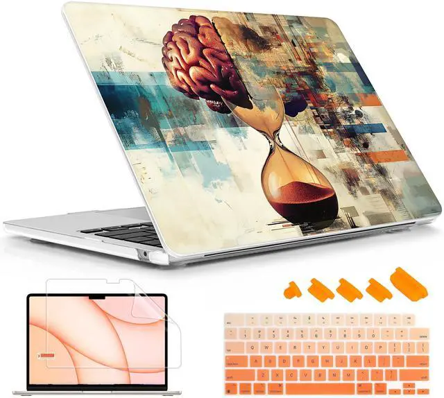 Lepeoac Case for MacBook Air 15 Inch 2025 2024 2023 Release M4 A3241 M3 A3114 M2 A2941, Hard Shell with Screen Protector & Keyboard Cover, Compatible with Touch ID, Brain & Hourglass