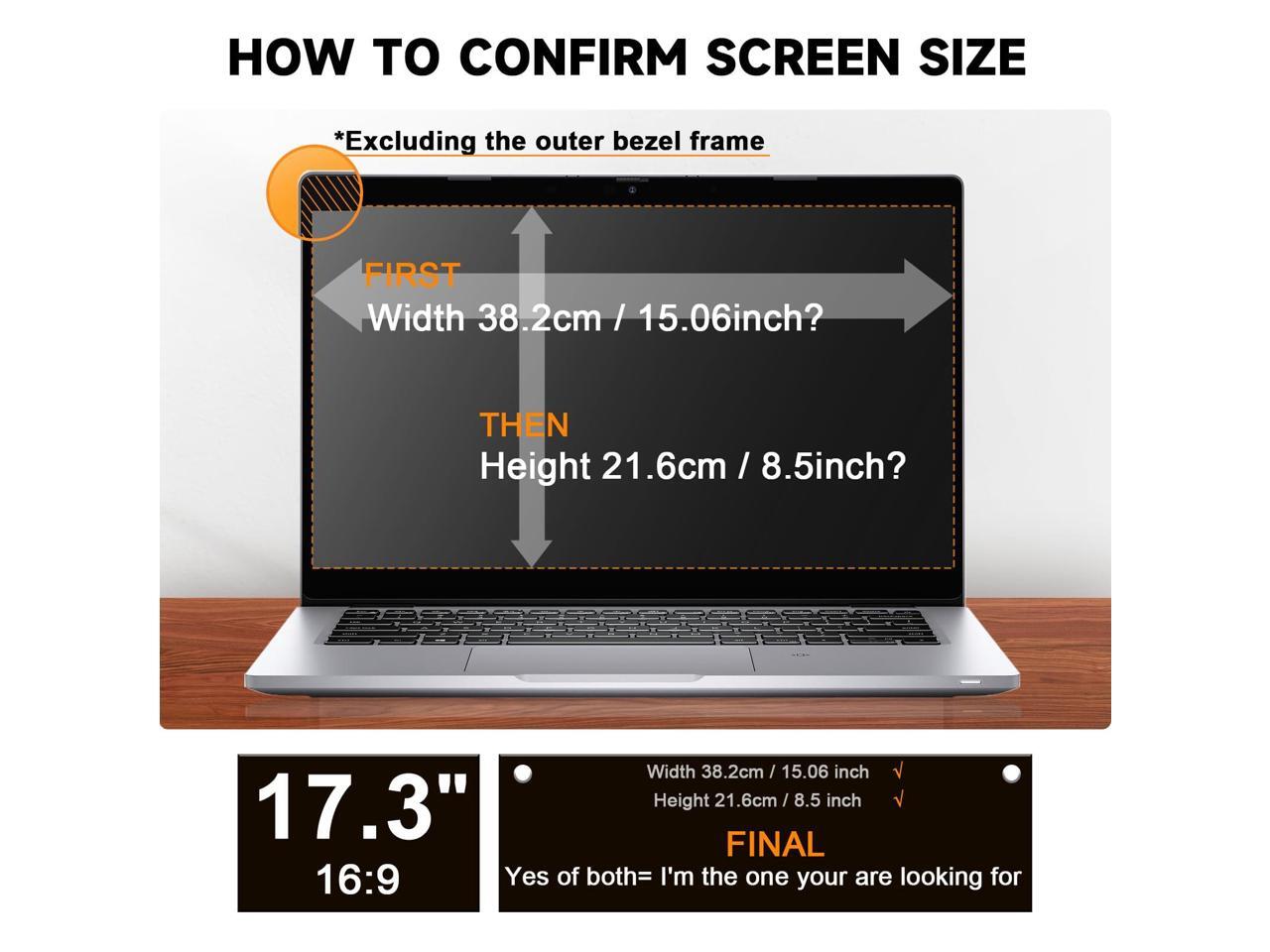 - [(Dimensions & Compatibility)] Mamol Laptop Privacy Filter is designed for 17.3 inch with Aspect Ratio 16:9 laptop, compatible with Lenovo, HP, Dell, Acer, Asus, Samsung, and other laptop brands. <Width: 15 1/16" (382 mm), Height: 8 1/2" (216 mm), Diagonal: 17.3" (439.4 mm) >Please verify your screen's width and height measurements before ordering as it's not recommended to only measure your screen's diagonal size.