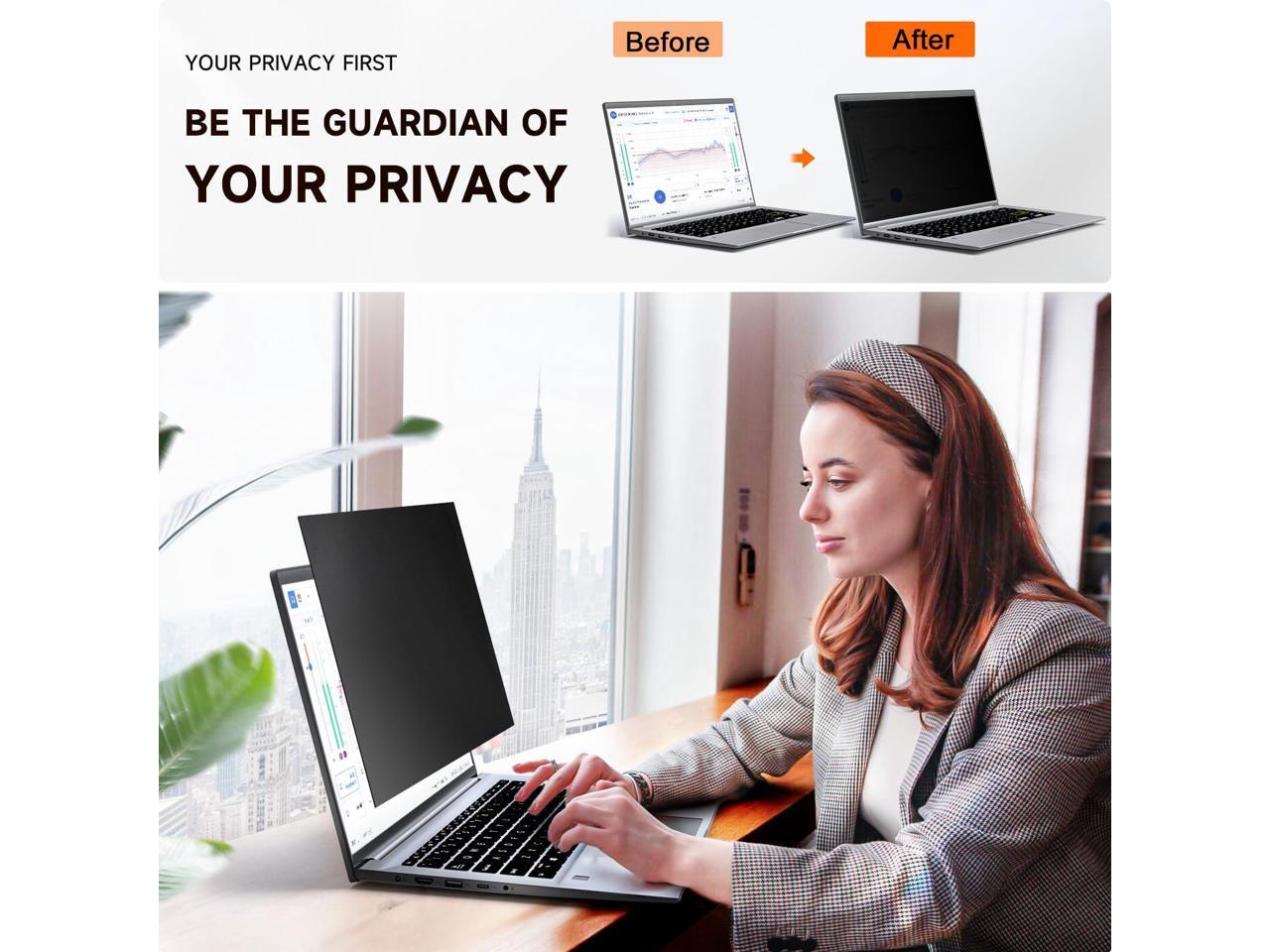- [(Enhanced Privacy Filter)] With unique, ultra-fine microlouver technology, our laptop privacy screen added a layer of security by keeping prying eyes away from password and document info while work around others, in public places, or near customers. A clear vision for you while others see a black screen - it gives you peace of mind knowing that your information and your computer are as safe as possible.