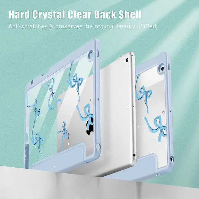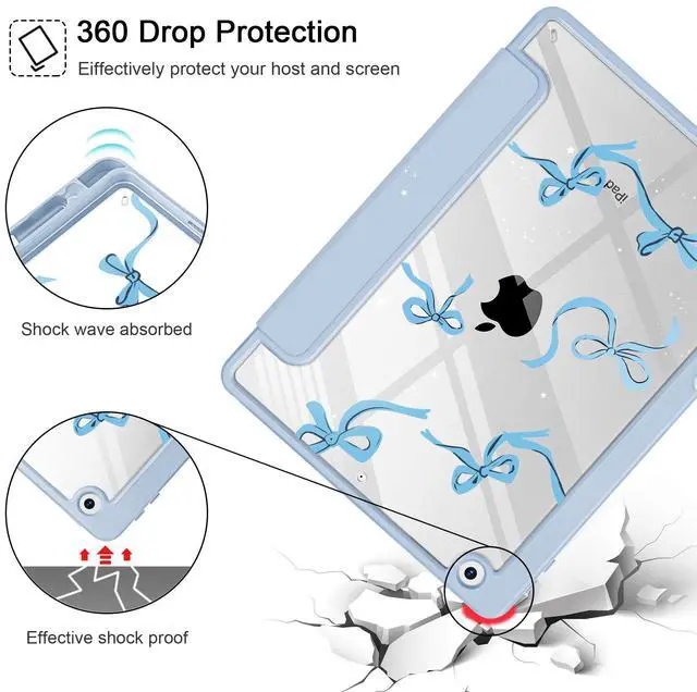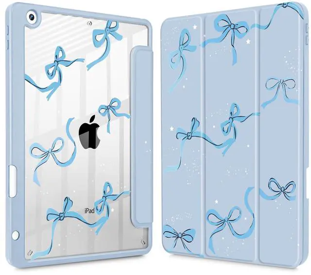 May Chen for iPad 9th Generation with Pencil Holder, iPad 8th/7th Gen Case 10.2-inch, [Penceil Holder] Trifold Stand Auto Wake/Sleep Clear TPU Protection Back Cover, Blue Bows
