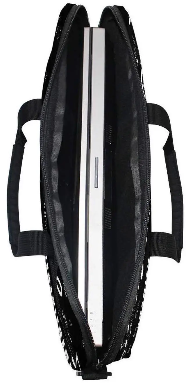 Laptop carrying case, carry with hand. Carry handles can be hidden away in the pockets when not needed.