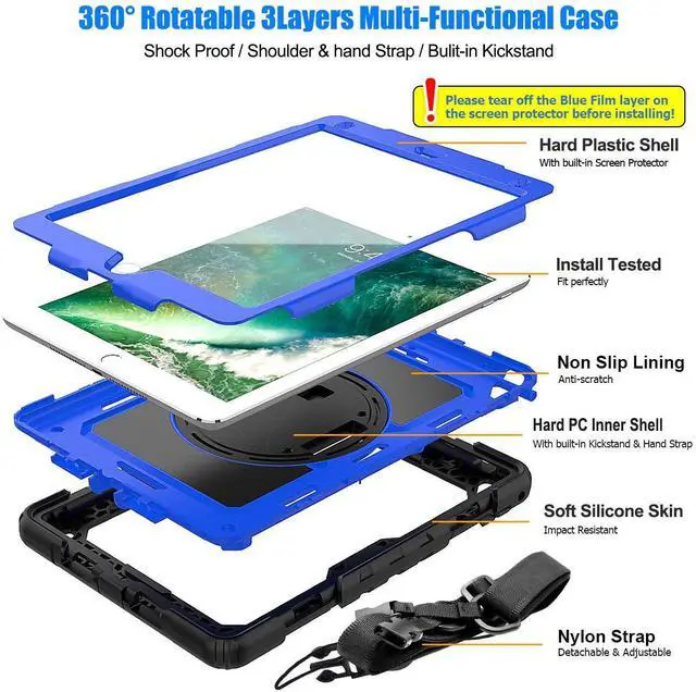 Material: The case for iPad 6th/5th generation case is made from thermoplastic polycarbonate and soft anti-skidding silicone, built-in screen screen protector, to create the full-body protection for case for iPad 6/ 5/ Air 2/ Pro 9.7, Not only shockproof/long-lasting but also comfortable hand feeling