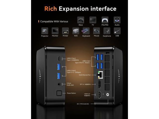 Full-Function Type-C Port: This Mini Gaming PC includes a full-function Type-C port that supports charging, data transfer (10Gbps), and 4K/60Hz display output, providing ultimate convenience and efficiency
