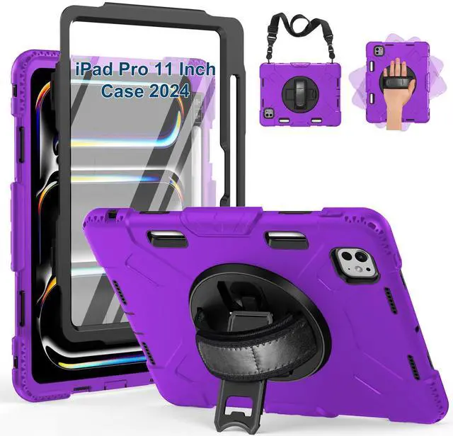 SUPFIVES 2024 iPad Pro 11 Inch Case M4 (5th Generation), with Screen Protector/Shoulder Strap/Pencil Holder/Handle/Rotating Stand, Purple