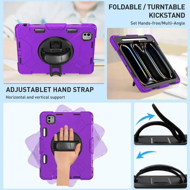 [SHOULDER & HAND STRAP]Elevate your outdoor iPad experience with the iPad Pro 11-inch 5th Gen case featuring a shoulder strap,designed to free up hands and provide convenient outdoor carrying without the worry of accidental drops. Also features a hand strap that supports horizontal and vertical, ensuring a secure grip on the iPad during use to prevent accidental slips from hands.Stay connected and protected wherever you go with this versatile case designed for ac
