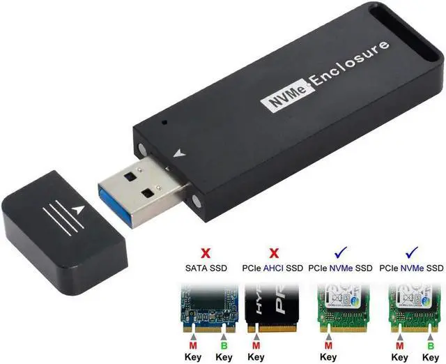 • This M.2 SSD Enclosure only for NVMe M-Key M.2 SSD (PCIE-based). Applicable to sizes 2242 / 2230 solid state drivers.