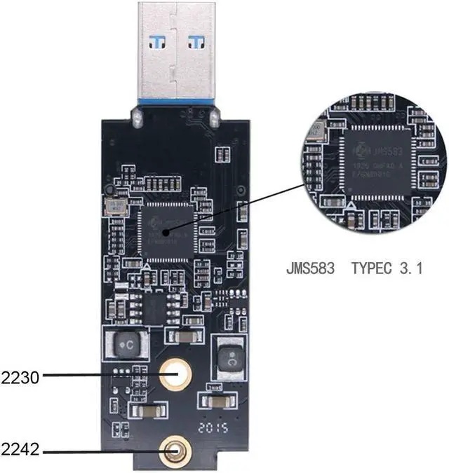 • USB 3.1 Gen2 10Gbps to NVME PCI-E M-Key Solid State Drive External Enclosure 2230/2242mm
