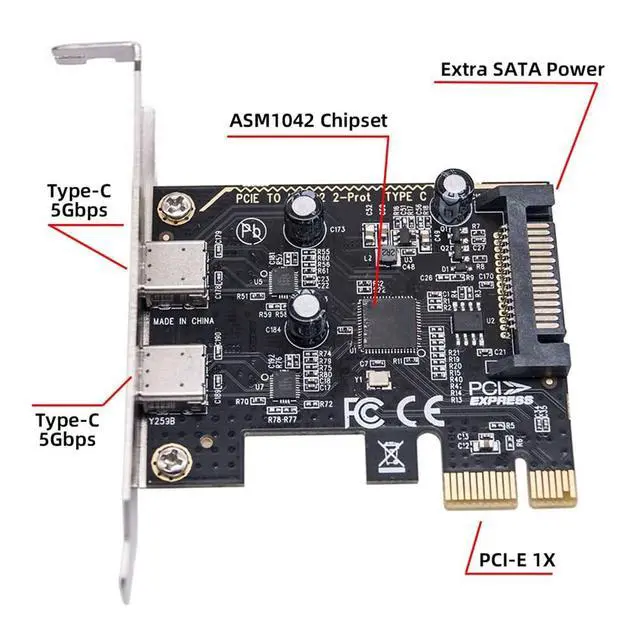 ^^ Chipset: ASM1042 chipset, ASM1042 supports the new feature of USB 3.1 Gen1, named Multiple INs to achieve fully utilization rate of 5Gbps data rate, taking advantage of the available bandwidth of USB 3.1 Gen1 bus. ^^ Need any extra Power Supply if you connect the high power device like SSD. The connector only transfer the usb 3.1 / 3.0 data and power, Can't connect usb-c video/audio/thunderbolt device. ^^ Compatible with Windows 7, 8, 10, 11, and Mac OS 10.8. 2 and above. Win 10/11, Mac OS, and Linux does not need any driver. It requires installing a driver when operating on Windows 7. ^^ Type C connector is the new design for USB 3.1, Reversible Design for Type C connector, Reversible plug orientation Cable direction, Support 5V/3A power charging. With 8cm low profile and 12cm standard bracket.