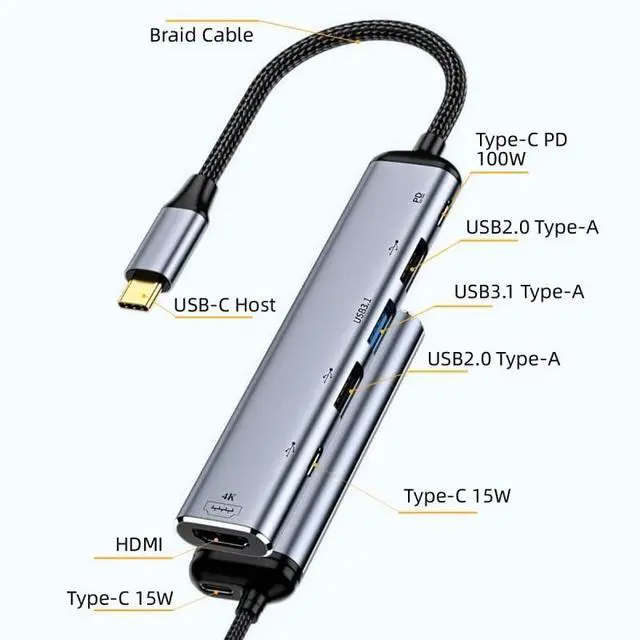 USB-C Type C to HDMI 4K Dual USB 3.0 HUB Converter Adapter 60hz with Female 100W PD Power PortYou can also connect a charging cable to the USB-C port to charge your laptop. USB-C HDMI Adapter lets you connect your laptop with USB-C port to any HDMI display or projector. While also connecting a standard USB device and a USB-C charging cable. 4K 60hz HD resolution for HDMI to enjoy entertainment as it was meant. This adapter allows you to mirror your laptop display to your HDMI-enabled TV or display.