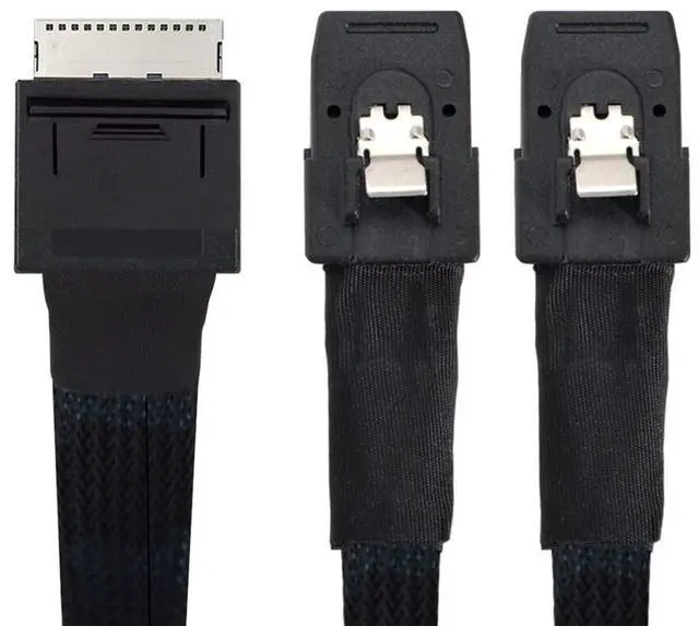 OCuLink PCIe PCI-Express SFF-8611 8x 8-Lane to Dual SFF-8087 4x SSD Data Active Cable 50cm ^^ This OCuLink 8x cable can be used to connect internal devices, e. g. a backplane with SFF-8087 connector to a controller with OCuLink SFF-8611 8x connector. ^^ OCuLink SFF-8611 8x 80pin male to dual SFF-8087 4x 36pin male ^^ Lock to