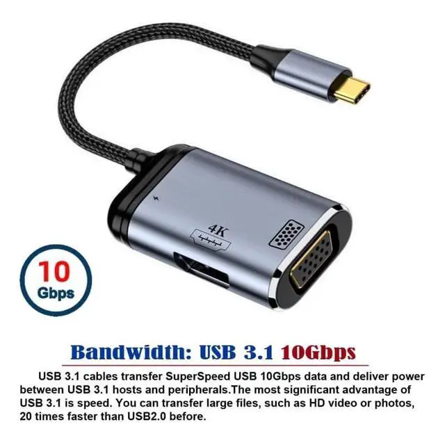 USB-C Type C to HDMI VGA Converter Adapter 4K 60hz 1080p with Female PD Power PortYou can also connect a charging cable to the USB-C port to charge your laptop. USB-C HDMI VGA Adapter lets you connect your laptop with USB-C port to any HDMI/VGA display or projector. 4k 60hz HD resolution for HDMI to enjoy entertainment as it was meant. 1080P 60hz HD resolution for HDMI to enjoy entertainment as it was meant. This adapter allows you to mirror your laptop display to your HDMI/VGA-enabled TV or display. The HDMI VGA only one can work at same time.