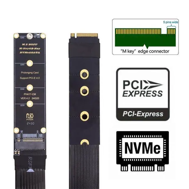 Extend the NVME from 2230/2242/2260/2280 socket to 2230/2240/2260/2280/22110 cable. ^^ The product included two PCBA and one cable. The cable is 30cm length. ^^ Support NVME to NVME, or SATA to SATA extension only, it can't convert NVME to SATA, also can't convert SATA to NVME. ^^