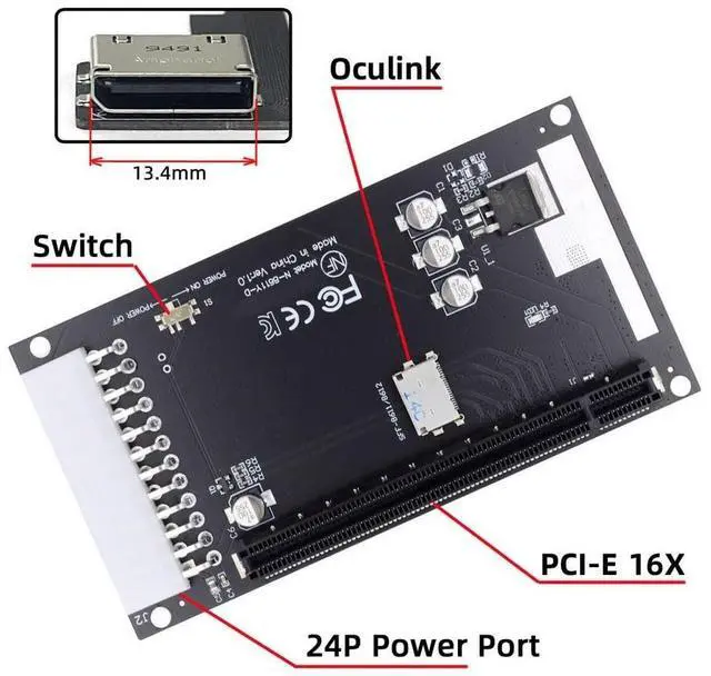The atx power port support 12V power. Please connect the extral power for your PCI-E card if the power is insufficient. (The switch is for ATX power) ^^ The converter support all standard PCI-E 16x 8x 4x card, like USB, LAN, 1394, Audio, Graphics Card. ^^ One PCIE PCI-Express 16x 4x device can be connected, The converter can be installed into the system internally through the SFF-8611/8612 oculink interface. ^^ This oculink pci-e converter enables belowing applications. ^^ Oculink 4x connectors are internal and external small form factor PCI-E connectors and cables optimized for the client and market.