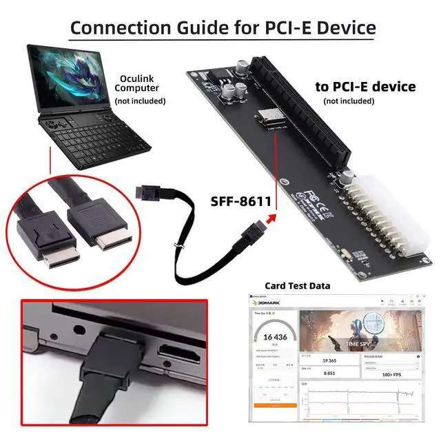 Straight Type Connector OcuLink PCI-Express SFF-8611 4i Male to PCIe SFF-8611 Male Data Active Cable for External eGPU SSD, 50cmData transfer rate up to 8