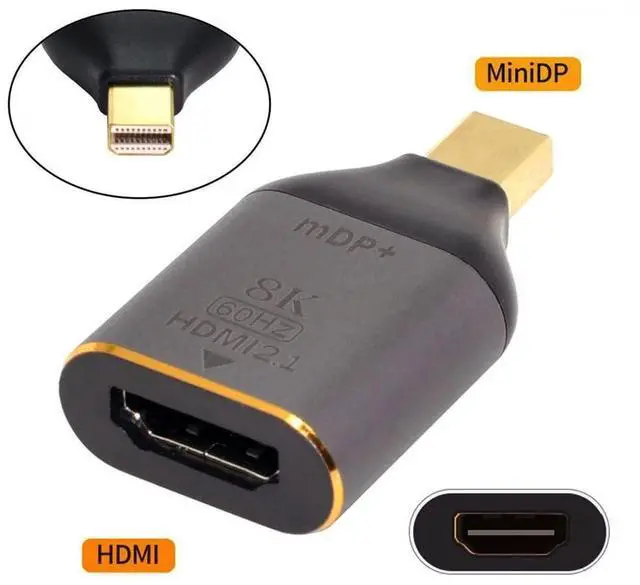 Mini DisplayPort 1.4 Source to HDMI 2.0 Display 8K UHD 4K Mini DP to HDMI Male Monitor Adapter ConnectorThis is a 8K Mini DisplayPort to HDMI adapter, Dont support HDMI to Mini DP. It is not Bi-directional. Mini DP x HDMI adapter supports 8K@60Hz, 4K@60Hz for Mini DisplayPort Enabled Desktopsand Laptops to Connect to HDMI Displays, enjoy home theater with 8K/4K high resolution. Mini Displayport Male to HDMI Female adapter with Slim Aluminum Shell transmits high-definition videoand audio from your computer to an HDTV for video streaming or gaming. Gold-plated dp to hdmi monitor adapter Video 8K, 4K UHD 2160p, HD 1080p, aluminum slim case, all of them ensure a strength connectivity between devices; With 8K/4K Mini DP to HDMI adapter under mirror mode, extend mode.