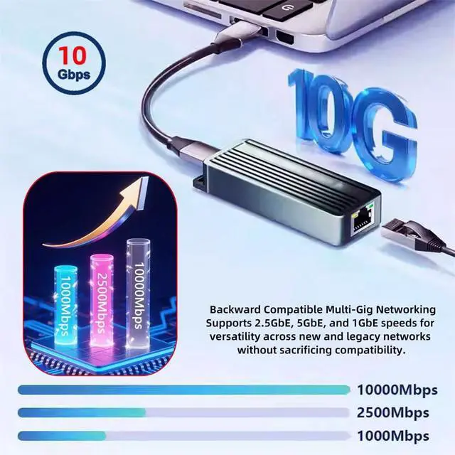 Upgrade: Instantly add a blazing-fast 10 Gigabit Ethernet port to any USB4 or Thunderbolt 3/4 host via USB Type-C. Ideal for desktops, laptops, and portable gaming systems needing faster wired connections. 2) High-Performance RTL8159
