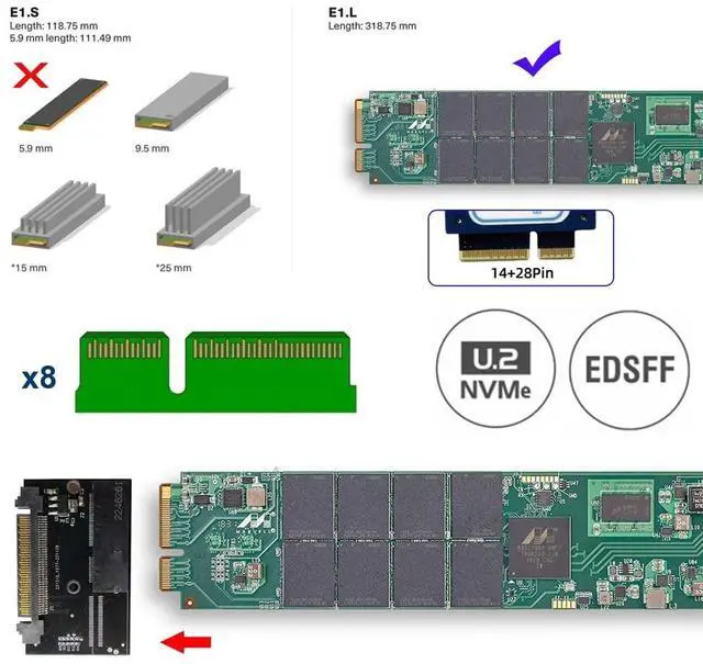This converter enables the connection of a GEN-Z 2C Connector 8X SSD in E1. L. ^^ This card expands the PC by one EDSFF E1. L 2C Connector 8X interface. It can be connected e. g. to the DC PM983 Series EDSFF NVMe SSD. ^^ The converter can be installed into your system internally through the U. 2 interface. ^^ Thus an EDSFF E1. L SSD becomes an U. 2 SSD, which can be used in IoT, data center and server area. ^^ Compliant with PCI Express 4.0.
