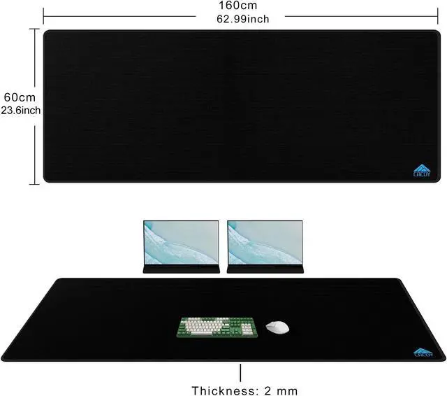 Size (63" x 24" / 160x60 cm): This massive mouse pad will cover your entire desk surface, while being the ultimate giant desk pad for keyboard and mouse.
