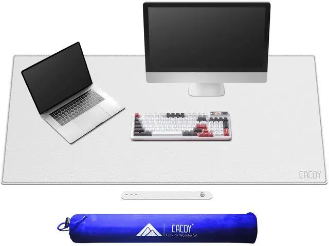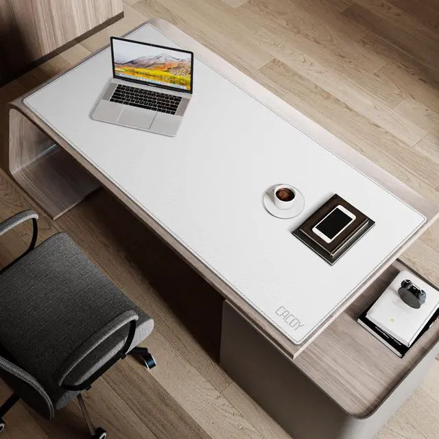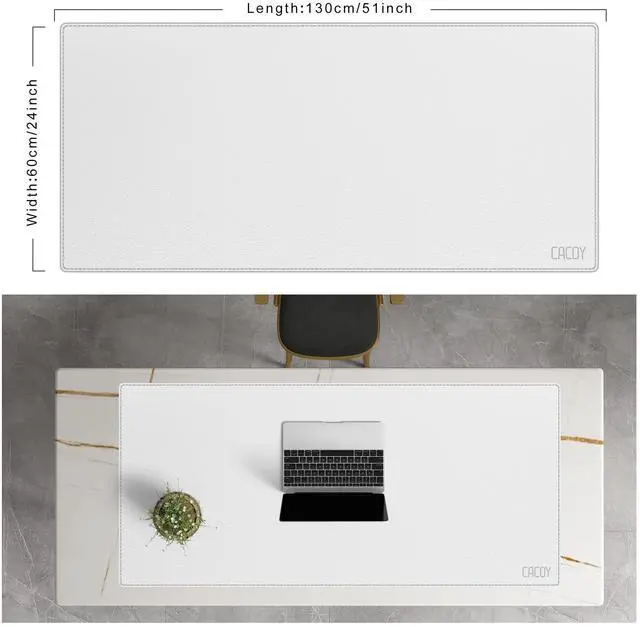 Cacoy Leather Desk Mat, 51" x 24" Office Desktop Protector Mat, PU Leather Office Computer Desk Pad Blotters, Large Gaming Keyboard Mouse Pad XXL (White)