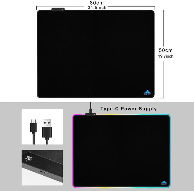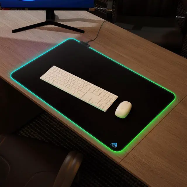 Large SizeThe large gaming mouse pad measuring 31.5 x 20 inch (800 x 500 x 3 mm) will fit your desktop and provide optimal movement space. Applies to all kind of keyboard and mice, providing plenty of space for professional gaming or office work. ^^ 9 Lighting ModesThe gaming mousepad features 9 lighting modes: including 7 static and 2 dynamic lighting modes. It also has a power-off memory function, which can memorize the mode you selected last time. ^^ Ultra Smooth SurfaceThe RGB gaming mouse pad is made of smooth microfiber material with a soft and smooth surface that allows the mouse to move more precise. ^^ Anti-Slip Rubber BaseAnti-slip rubber base can firmly grip your desktop, and stitched edges make the pad much more durable and longer lasting. ^^ Easy To UseThe gaming mouse pad is powered by USB, plug and play, no driver required. One-touch button beside the mat designed for switching the light colors/modes/on&off while you are in use. ^^ Cool Gaming AccessoriesThe RGB gaming mouse pad with bright and dazzling lighting effect creates a cool and amazing gaming atmosphere for gamers who love PC games, excellent desk accessories for the game room.