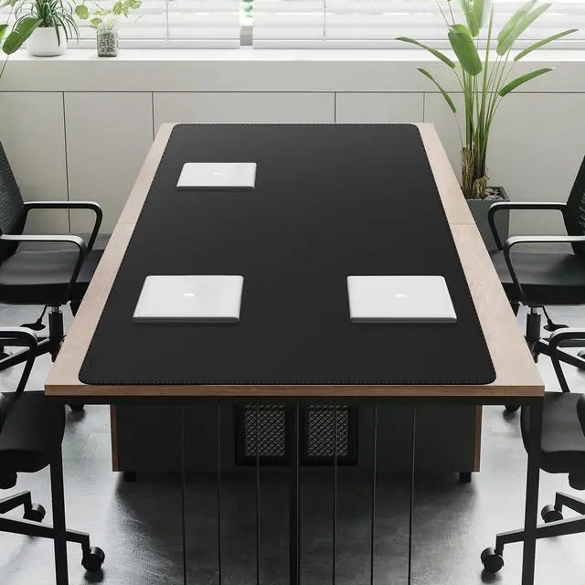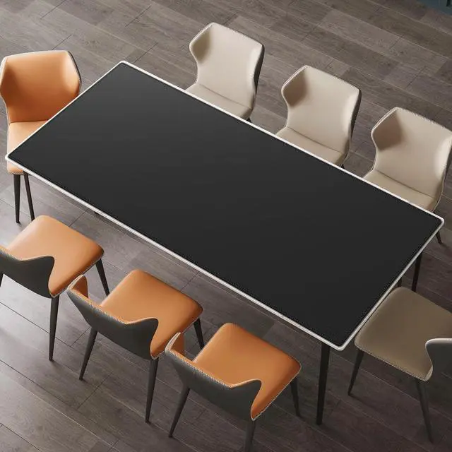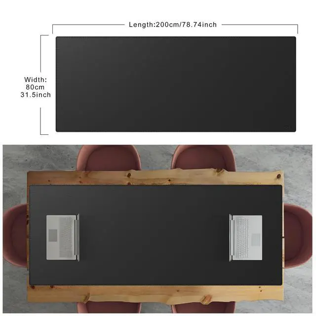 Coming in at mega size of 78.7" x 31.5" / 200x80 cm, this desk pad can accommodate your laptop or monitor, ideal for large office executive desk or meeting desk. ^^ This desk mat is made with fine leatherette, provides a silky-smooth surface for efficient and uninterrupted use of your mice. ^^ Protects against fraying, peeling, and curling with some beautiful curvy stitched edges, enhancing its aesthetics. ^^ The surface is stain-resistant and waterproof helps to protect your desktop surface from scratches, coffee spills, stains, heat and stuffs.