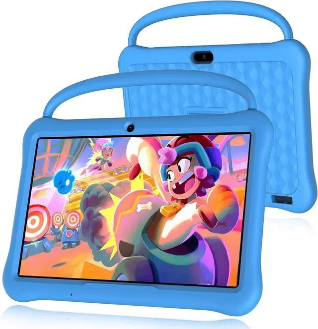 qunyiCO Kids Tablet 10 inch, Android Tablets for Kids with 64GB ROM, 6000 Mah, Tablet PC with Time Limits 1280 * 800 IPS Touch Screen Kid-Proof Case Parental Control Learning App (Blue)