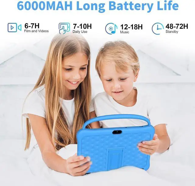 High Configuration & Android 13 SystemThe qunyiCO kids tablets is equipped Android 13 system and 1.6 GHz quad-core processor is 20% faster than normal processors. The toddler tablet has been certified by GMS, and apps such as YouTube Kids, Netflix, Hulu can be downloaded and used.