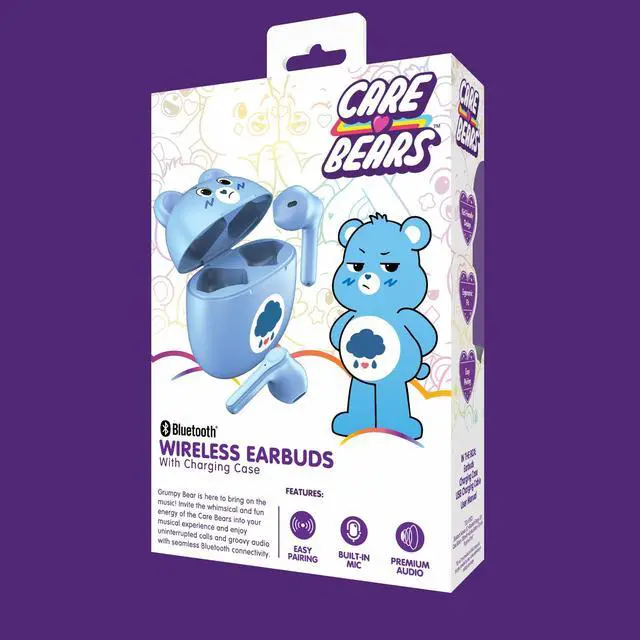 Experience your music in style with the Care Bears Bluetooth Wireless Earbuds! These adorable earbuds feature a cute Grumpy Bear design with a blue finish, perfect for fans of all ages. Whether youre listening to your favorite playlist or taking an important call, these earbuds deliver high-quality sound while showcasing your love for Care Bears.