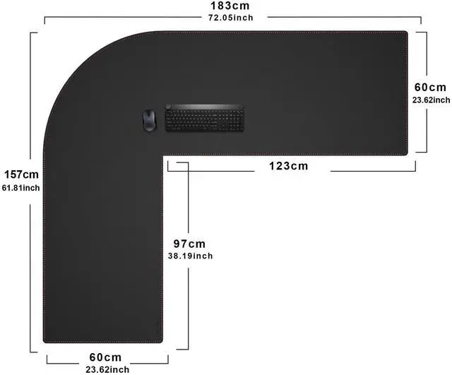Transform your corner desk into a sleek, organized hub with the ZORESYN L Shaped Desk Pad. Designed for modern offices, home studios, and multi-device setups, this 61.8" x72"x 23.6" desk pad black combines functionality with minimalist elegance. The expansive L-shape covers your entire workstation, protecting desks from scratches, spills, and heat while providing a unified surface for keyboards, mice, and accessories.