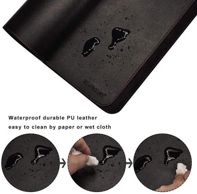 Waterproof Surface & Anti-slip Back Side - Different sides different material, PU leather side is smooth and waterproof which easy clean and can be use as a mouse pad or writing mat. The suede back side is non-slip base, gives you soft touch, and please note that the back side does NOT totally waterproof.