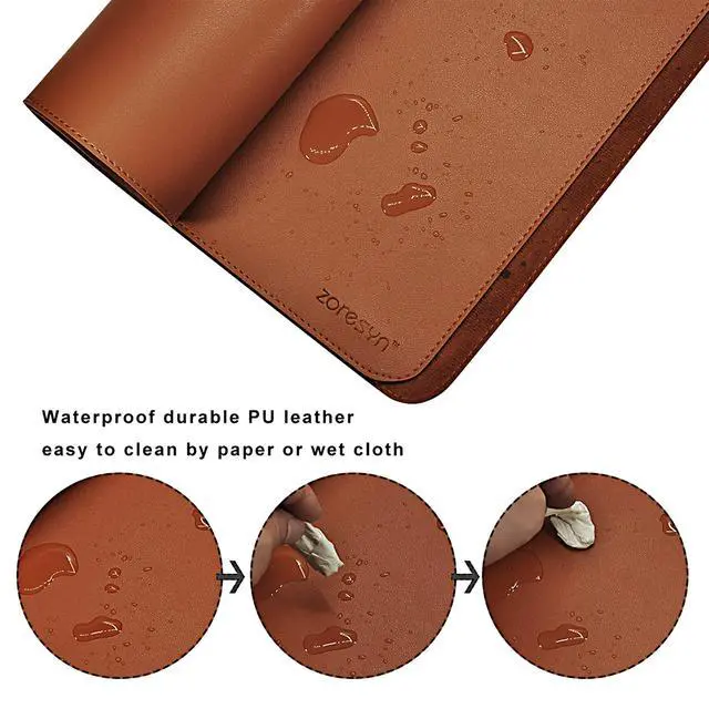 ^^ Cleaner: Because of the durable PU leather, our desk pad will make your desk cleaner and tidier. The leather desk pad protects your desktop from spilled water, drinks, coffee, ink, and other liquid. When some emergency happened, all you need to do is wipe with a wet cloth or paper. ^^ The edges are expertly reinforced by a tight stitching process that not only looks great but also prevents damage and deformation, greatly increases lifespan and aesthetics of mouse pad. ZORESYN large size desk protector mat can be conference table, office desk, banquet hall, restaurant, or home. It's a good gift for your friend.