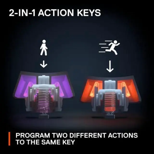 2-in-1 Action Keys - Program two different actions for the same key, such as walking with a light touch and sprinting with a deeper press.