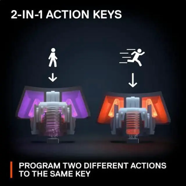 The Apex Pro TKL is the world's fastest keyboard with OmniPoint 2.0 switches for over 11x faster response and 10x quicker actuation. Adjust keystrokes to your desired registration depth, ranging from 0.2 mm to 3.8 mm, or combo two functions in one key while playing with a streamlined TKL keyboard.