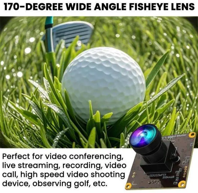 ELP 5MP Global Shutter 50fps USB Fisheye Camera Module for Computer Mini Lightburn Camera for Laser Engraver High Speed 60fps PC Camera Wide Angle Web Camera for Live Streaming (170degfisheye Lens)