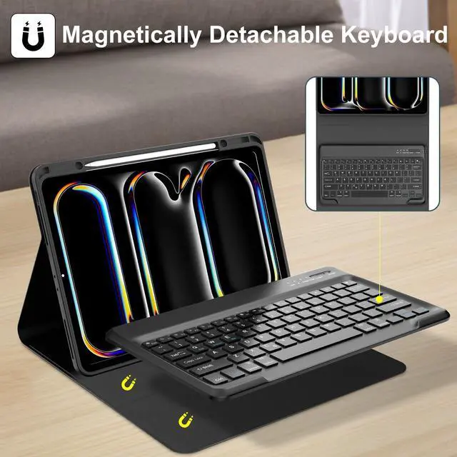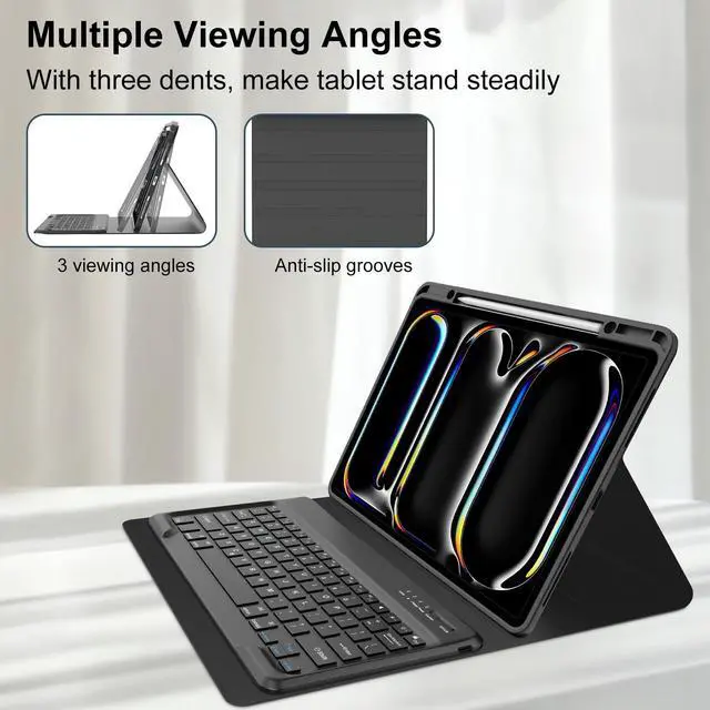 - The ipad pro 13 m4 keyboard case supports 3 usage modes: Typing, Viewing, Reading, giving you incredible versatility. Allows you to prop up your tablet to watch videos.