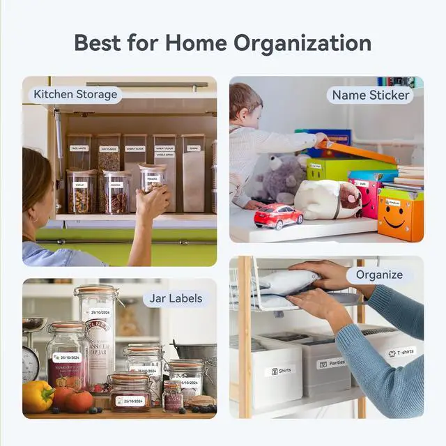 Wide Application: The label maker printing width up to 15mm with a variety of styles of label tapes, such as 12X40mm, 14x30mm, 15x30mm and more, widely used in home storage and organization, school and office file classification, and small business, such as jar stickers, food date, cosmetics, pe