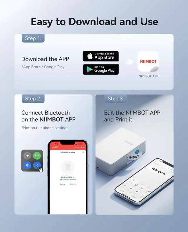 Use: This is a wireless bluetooth label printer edits labels via theNIIMBOT APP for convenient & fast printing. Simple to use and smooth operation. Smarter than traditional label makers with keyboards. Easy to carry and print high-quality labels and stickers anytime, anywhere ^^ Rich in FeaturesSupport auto recognition for label (only support NIIMBOT Label). For NIIMBOT APP, it contains multiple free templates like texts, Icons, tables, logos, barcodes, QR codes, images, time, excel, scan, voice recg, and more. You can easily create various design labels from the NIIMBOT App ^^