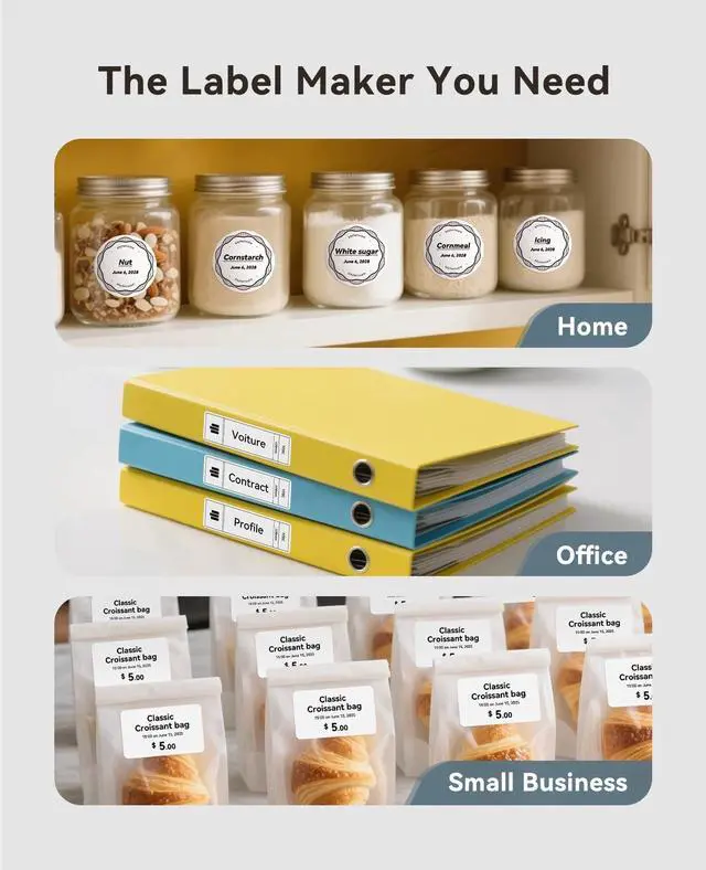 • Multi-scene Use: It's widely used in small businesses, coffee shops, bakeries, retail, the food industry, jewelry, etc. for price labels, addresses, jars, DIY, barcodes, dates, ingredients, and product labeling. It is for various labeling needs and brings convenience to work and life