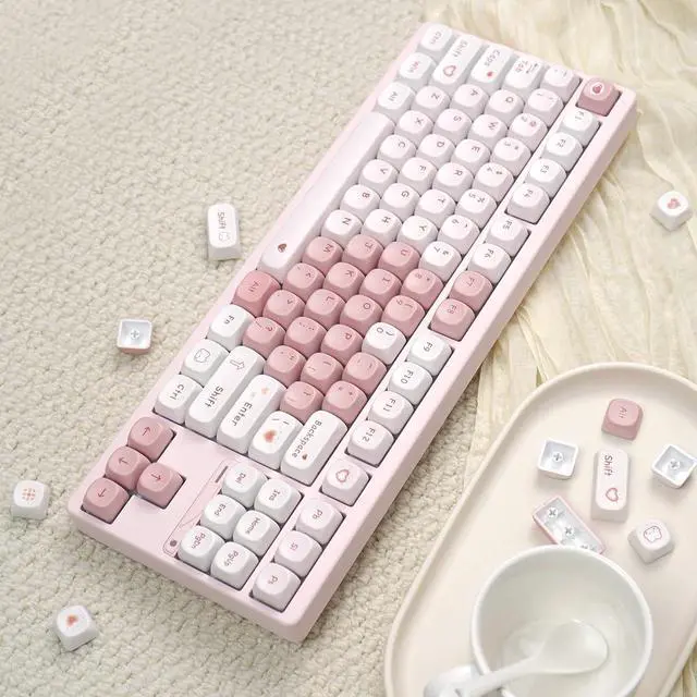 Adorable Pink Keycaps: Part of the keycaps spell out a little heart are a dream come true for anyone who loves a touch of romance and uniqueness. Their soft pink hue adds a sweet, eye-catching vibe to your keyboard, making it both stylish and practical. Whether you're a gamer, a typist, or just someone who loves to spice up their workspace, these keycaps are here to make your setup pop!